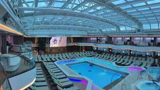 *Zwembaden: Het schip heeft meerdere zwembaden, waaronder het Lido Pool, dat overdekt kan worden voor alle weersomstandigheden, en het Sea View Pool aan de achterzijde van het schip, perfect om te relaxen met uitzicht op de oceaan.Kijk eens rond in 360 graden