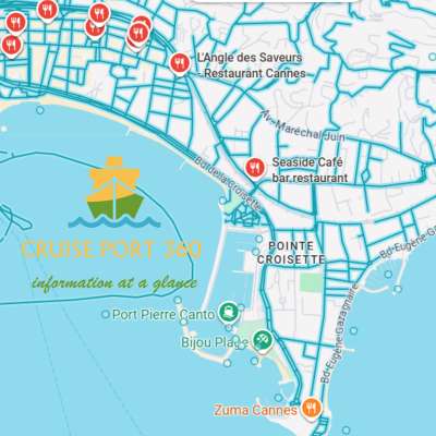 Cruiseschepen liggen voor anker en passagiers worden met tenderboten naar de Vieux Port gebracht. U stapt direct in het centrum uit, op loopafstand van winkels, cafés en de Croisette.