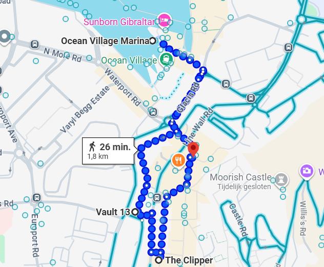 Vanaf de cruiseterminal bent u in slechts 10 minuten lopen in het centrum. Excursies naar de top van de rots duren meestal 2–3 uur, wat perfect past binnen een dagstop. U kunt ook kiezen voor een ontspannen wandeling door de botanische tuinen of een lunch in het historische Casemates Square.
