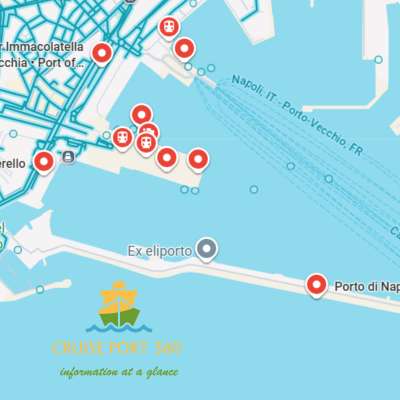 De cruisehaven Stazione Marittima ligt direct naast het centrum. U kunt te voet naar de oude stad, of een taxi nemen naar Pompeï (30 min) of Sorrento (1 uur). Excursiebussen vertrekken direct vanaf de terminal.