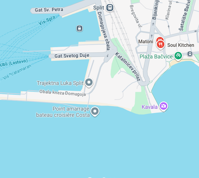 De cruisehaven van Split ligt op slechts 800 meter van het historische centrum. Je loopt in ongeveer 10 minuten naar de Riva-boulevard en het Paleis van Diocletianus.